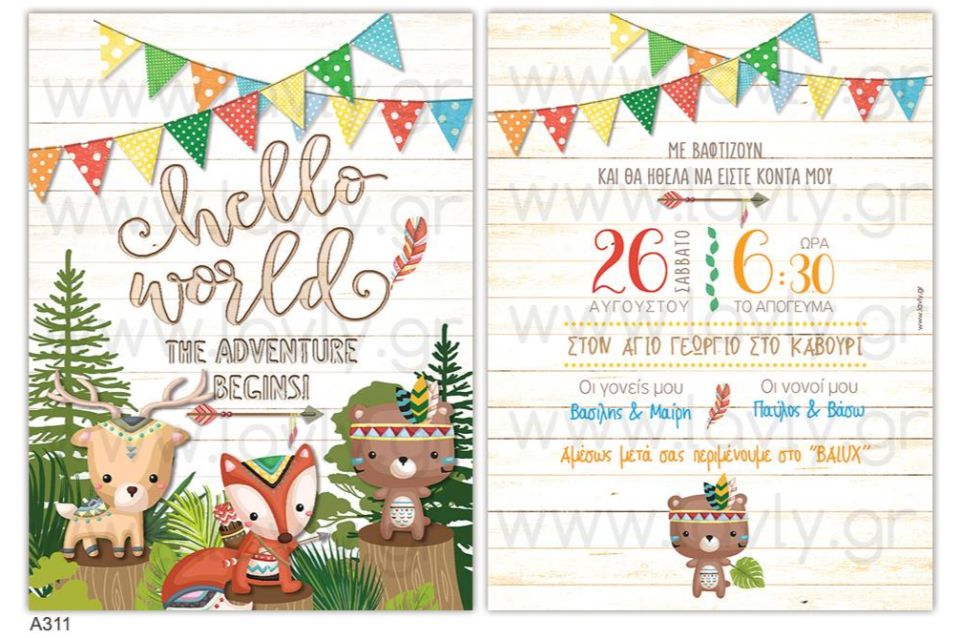 ΠΡΟΣΚΛΗΤΗΡΙΟ ΒΑΠΤΙΣΗΣ ΖΩΑΚΙΑ ΤΩΝ ΙΝΔΙΑΝΩΝ-Α311