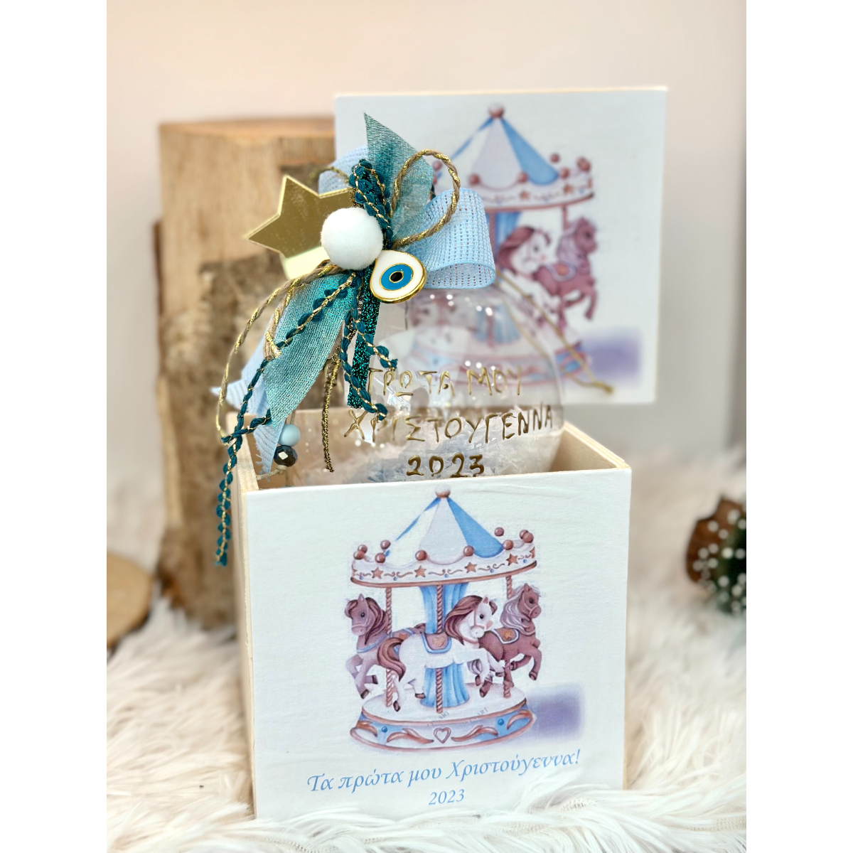 ΔΙΑΦΑΝΗ ΜΠΑΛΑ 12ΕΚ. ΜΕ ΑΣΟΡΤΙ ΞΥΛΙΝΟ ΚΟΥΤΑΚΙ. ΓΙΑ ΤΑ ΠΡΩΤΑ ΧΡΙΣΤΟΥΓΕΝΝΑ.