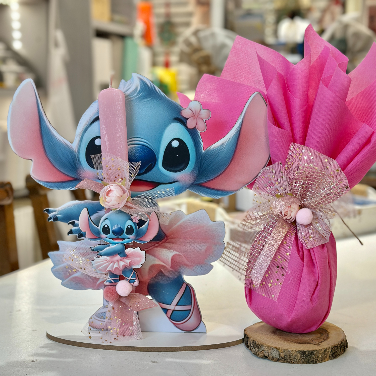 ΠΑΣΧΑΛΙΝΟ ΣΕΤ STITCH ΜΕ ΑΡΩΜΑΤΙΚΗ ΛΑΜΠΑΔΑ-ΣΟΚΟΛΑΤΕΝΙΟ ΑΥΓΟ κ ΞΥΛΙΝΗ ΒΑΣΗ STITCH 30 εκ-8069