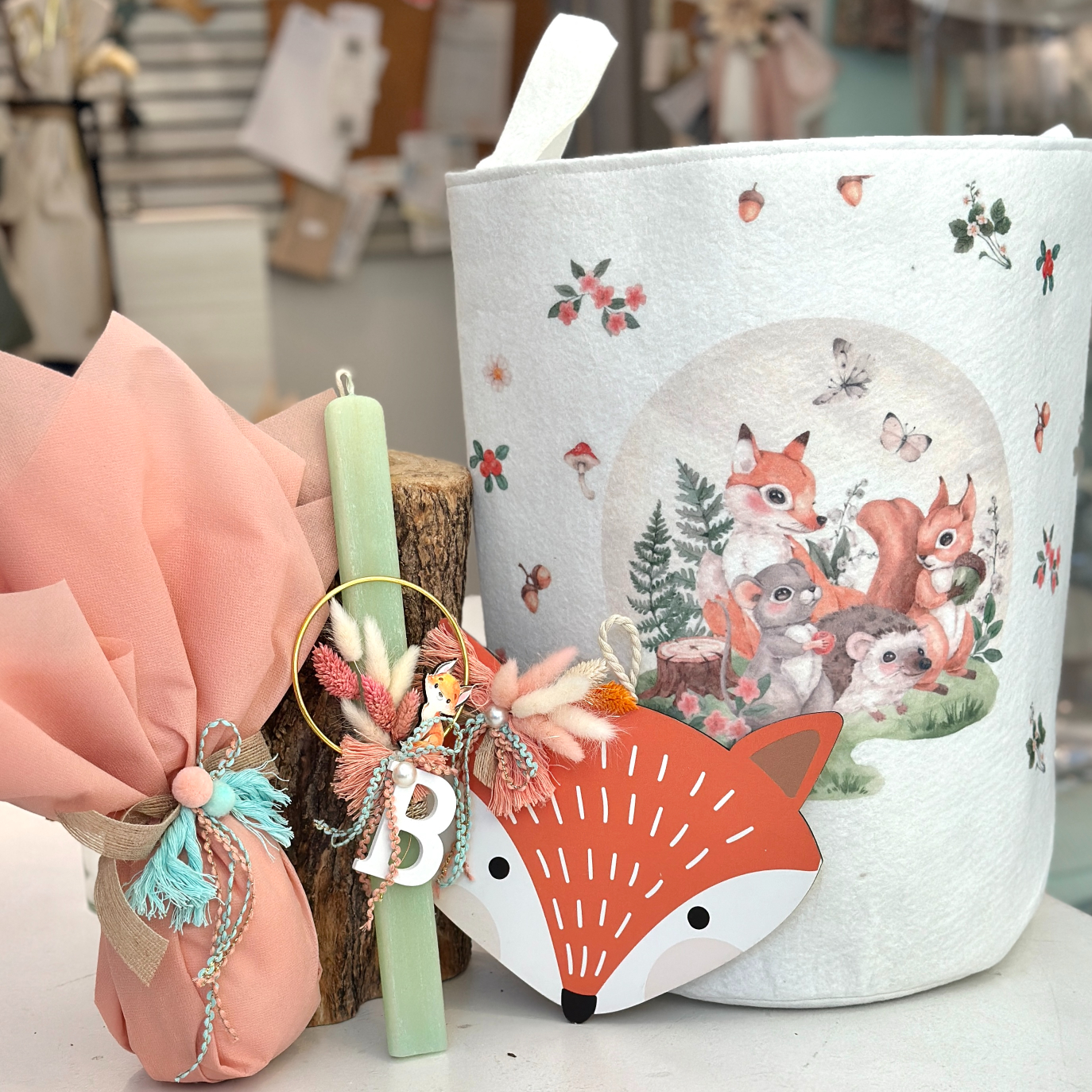 ΠΑΣΧΑΛΙΝΟ ΣΕΤ ΖΩΑΚΙΑ ΤΟΥ ΔΑΣΟΥΣ ΜΕ ΑΡΩΜΑΤΙΚΗ ΛΑΜΠΑΔΑ-ΣΟΚΟΛΑΤΕΝΙΟ ΑΥΓΟ-ΞΥΛΙΝΟ ΚΑΔΡΑΚΙ 25εκ.κ ΔΩΡΟ ΣΑΚΟ 60εκ-8096