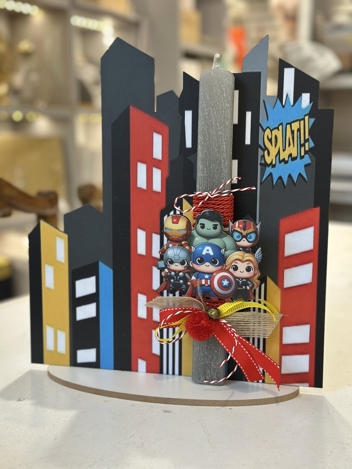 ΠΑΣΧΑΛΙΝΗ ΑΡΩΜΑΤΙΚΗ ΛΑΜΠΑΔΑ ΣΟΥΠΕΡ ΗΡΩΕΣ ΜΕ ΘΕΜΑΤΙΚΗ ΞΥΛΙΝΗ ΒΑΣΗ 30 ΕΚ.